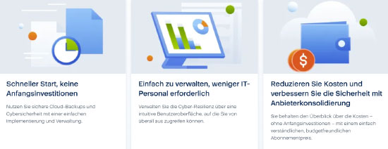 Wir bieten Ihnen intuitives, zuverlässiges Cloud-Backup und Cybersicherheit für Unternehmen. Schützen Sie alle Datenquellen – unabhängig von der Größe oder dem Speicherort der Daten – Flexible Lizenzen für jeden Geschäftsbedarf.